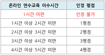 ※ 아래 <온라인 평점 인정 지침>에 따라 평점 인정